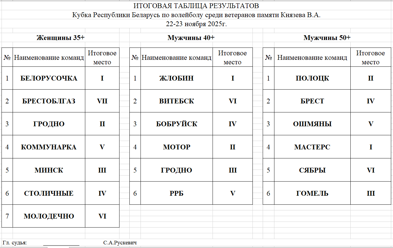 22-23 ноября 2025 года Белорусская федерация волейбола, Белорусское общественное объединение «Ветераны физической культуры и спорта» при активном участии БГУФК и волейбольного клуба «Минск», провели на площадках с/к Минск Арена и БГУФК Кубок Республики Беларусь, среди ветеранов волейбола, посвященной памяти Заслуженного тренера СССР и БССР Василия Алексеевича Князева.