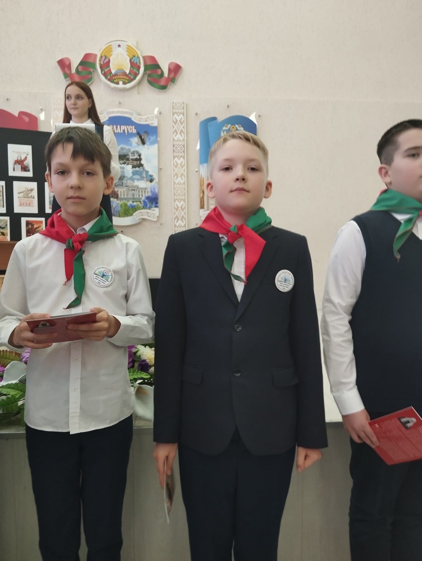 На встречу с учащимися школы были приглашены редакторы газеты «Зорька» Грамович Людмила Николаевна, которая работала в этой должности с 2000 по 2020 годы и была третьим комиссаром батальона орлят, Джежора Александра Васильевна, она в настоящее время работают главным редактором газеты «Зорька» и возглавляет это патриотическое движение, Хроменков Леонид Яковлевич 1-й зам. Представителя БОО «ВФКиС», заслуженный тренер БССР.