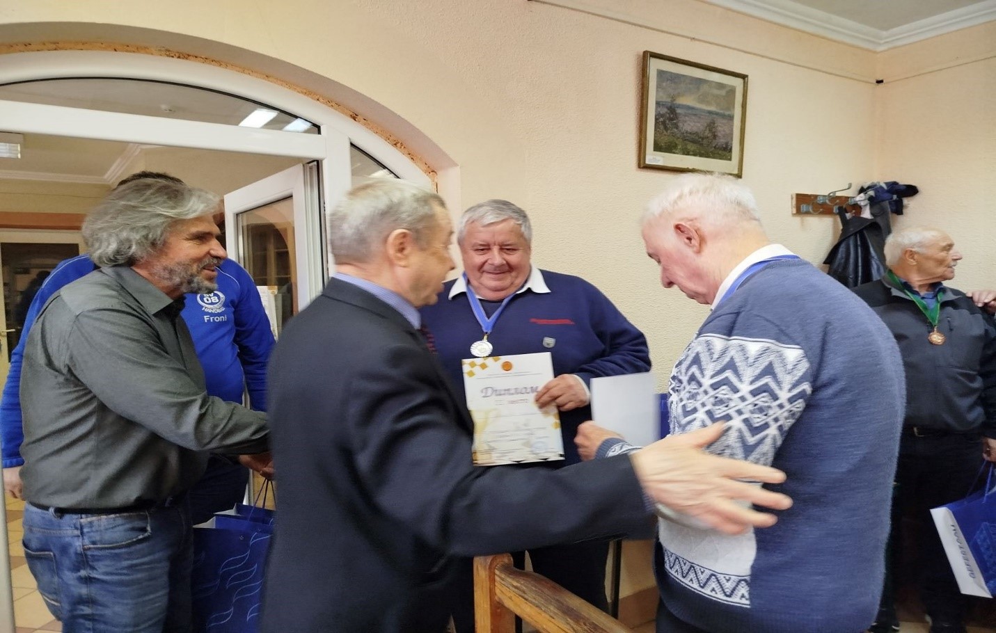 Участники-ветераны тепло поприветствовали друг друга, пообщались в дружественной атмосфере и обменялись улыбками.