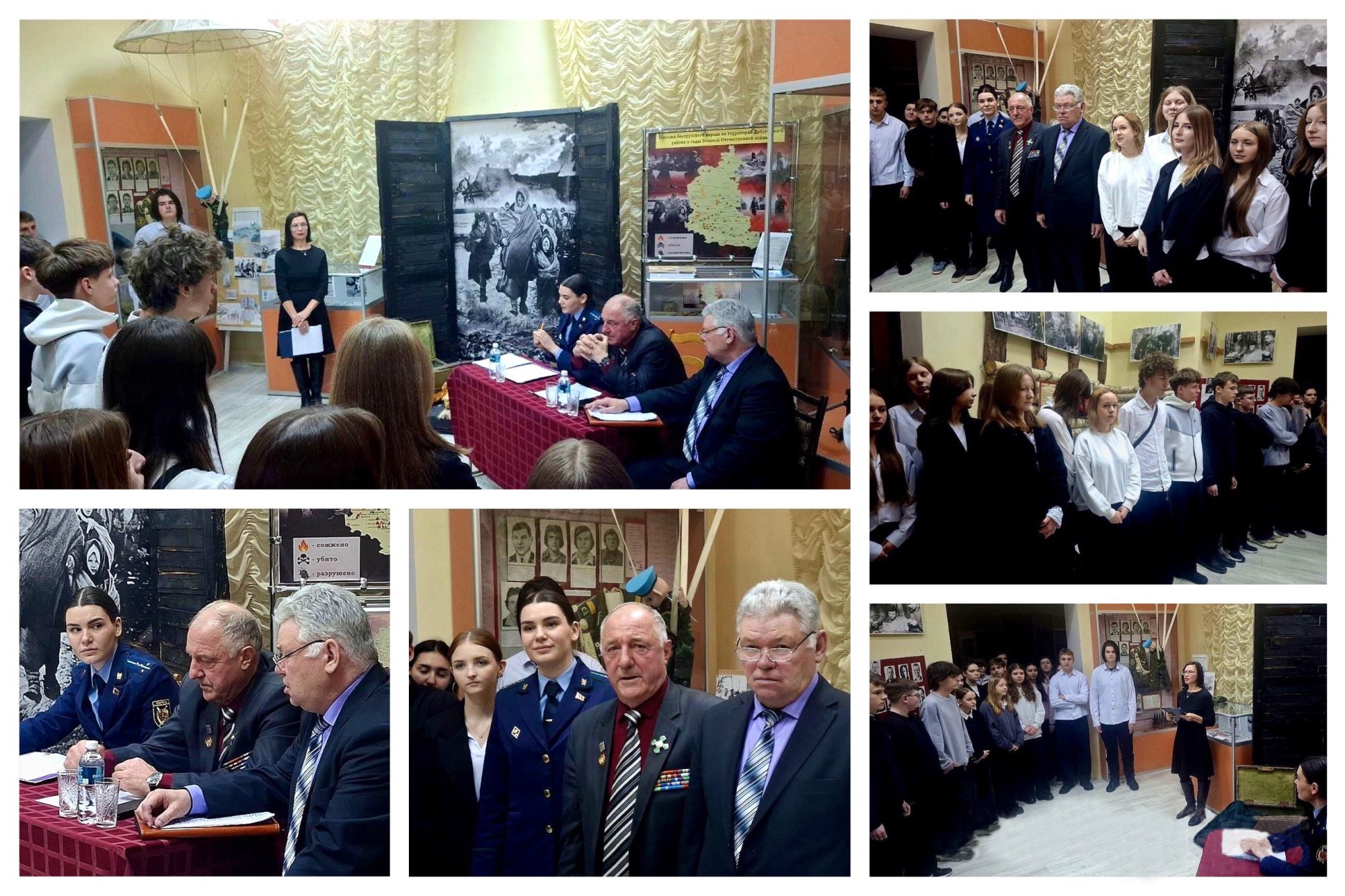 На мероприятие были приглашены: ветеран войны в Афганистане Царик Владимир Иванович, старший помощник прокурора Добрушского района Кучинская Анна Владимировна, председатель Добрушского районного Совета ветеранов Старотиторов Александр Михайлович. Гости рассказали молодёжи о событиях тех лет, примерах мужества и стойкости советских солдат. Встреча прошла в тёплой, доверительной атмосфере. Музей выражает благодарность всем участникам за сохранение исторической памяти.