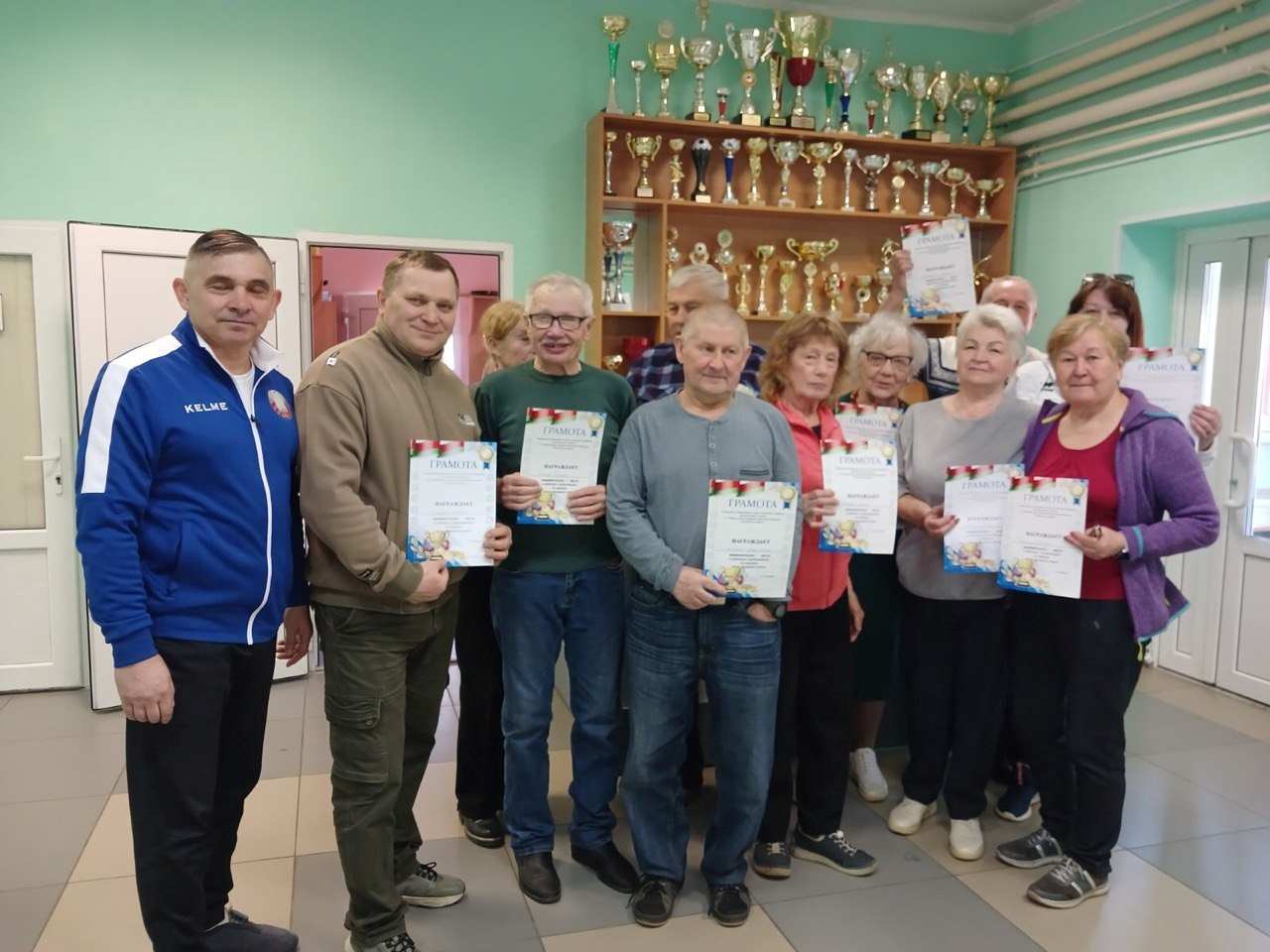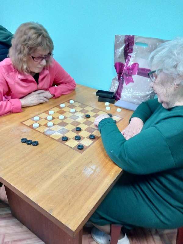 Спартакиада послужила еще и поводом, чтобы коллективно поздравить с юбилейной датой, с 80 – летием со дня рождения, Фрид Гелену, которая с детства дружит с шахматным миром, и которая до сих пор старается не пропускать ни одного районного и областного соревнования по шашкам.